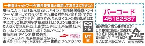 魚介類(マグロ、フィッシュペプチド等)、鶏ささみ、たんぱく加水分解物、酵母エキス、オリゴ糖、増粘多糖類、調味料、ビタミンE