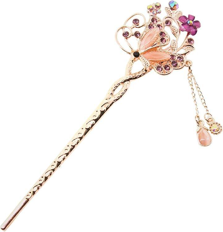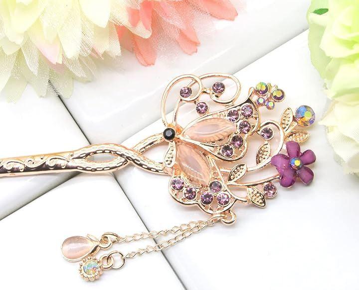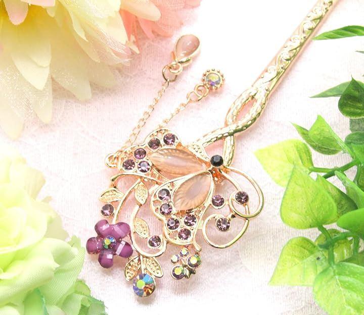 「蝶と花のコラボレーション」可憐なちょうちょと花の一本挿しかんざしは、透明感あふれるキュービックジルコニアを贅沢に使用した華やかなヨーロピアンスタイルのヘアアクセサリーです。
