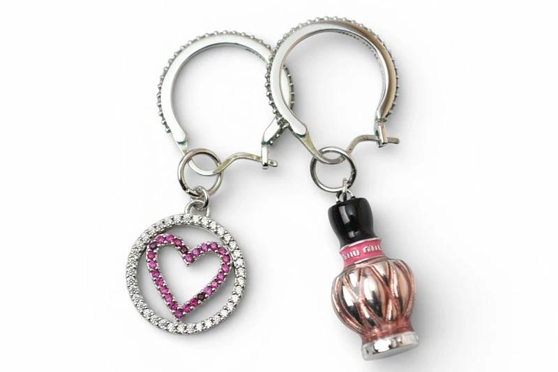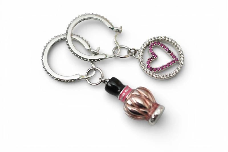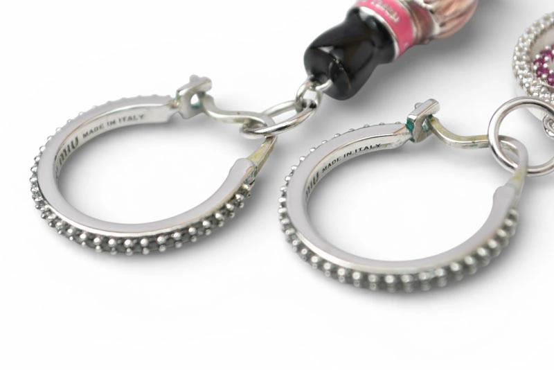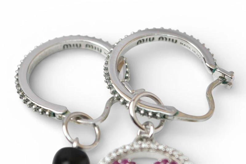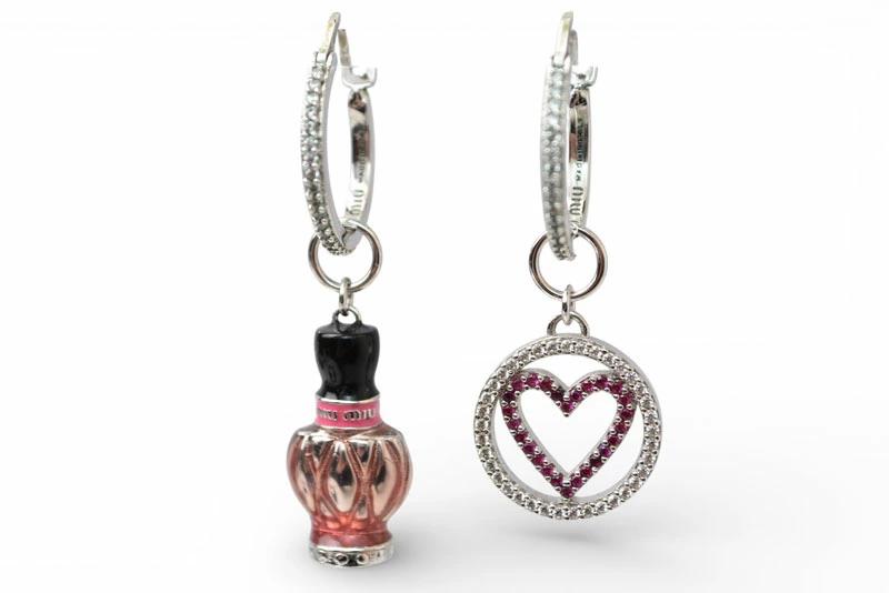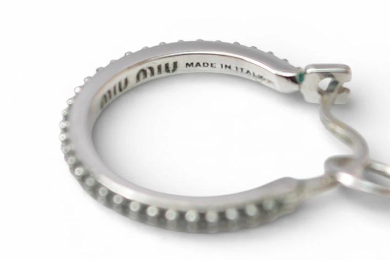 | 商品説明 | miu miu(ミュウミュウ)の香水ボトルをイメージしたハートモチーフが印象的なピアスです。可愛らしいフォルムに、クリスタル/ラインストーンをあしらい、フェミニンで華やかな雰囲気を演出。チャームは外してシンプルなフープピアスとしても使えます。ミュウミュウらしい遊び心と上品さを兼ね備えたデザインです。コーディネートのアクセントとして存在感があり、デイリー使いはもちろん、パーティーシーンや特別なお出かけにもおすすめ。ギフトにも喜ばれるアクセサリーです。 |