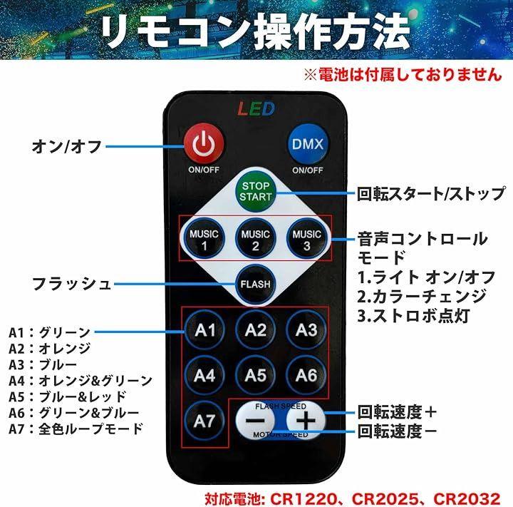 「リモコンでスムーズな操作」遠隔操作用のリモコンが付属しているため、電源のオンオフや点灯モードの切り替え、回転制御が簡単に行えます。