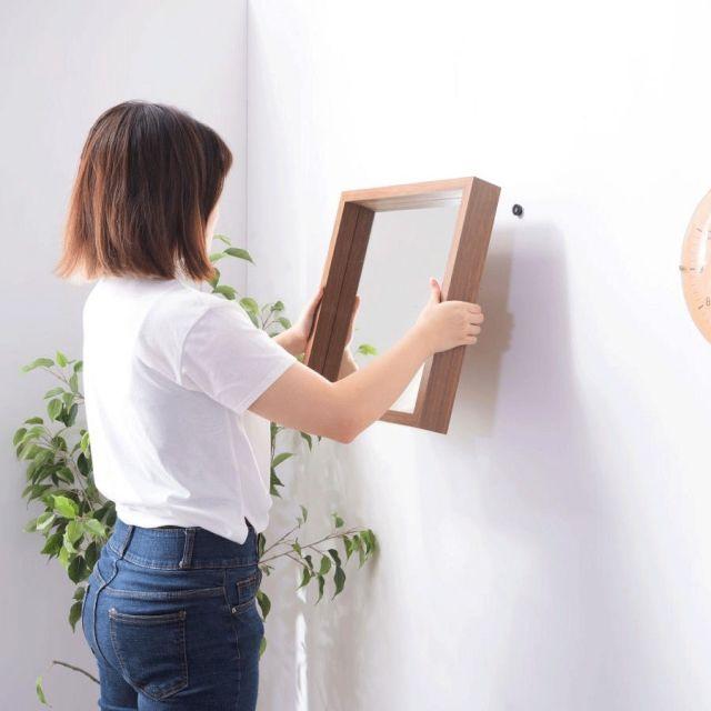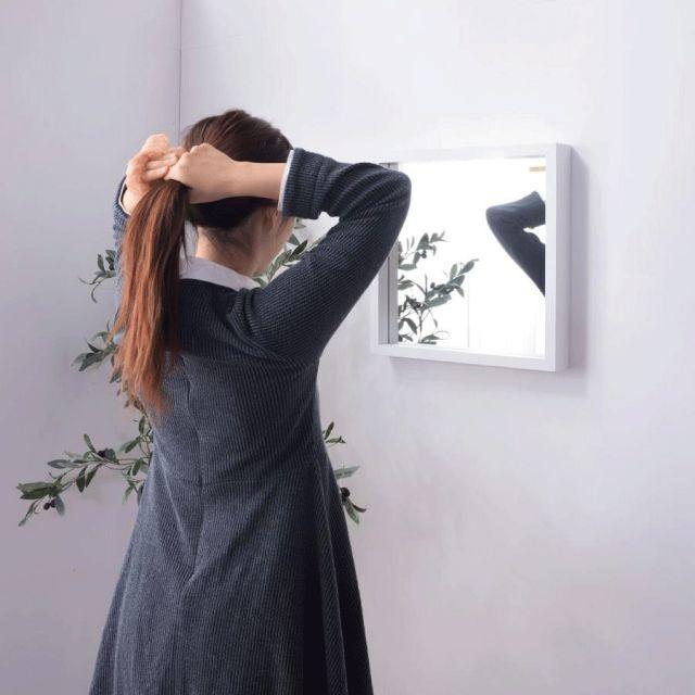 W42×D6×H42cm【材質】合成樹脂化粧合板3mm飛散防止ミラー【機能】壁に傷が付きにくい専用パーツ付属【静的耐荷重】0.5kg【小箱】あり【組立】完成品【原産地】中国