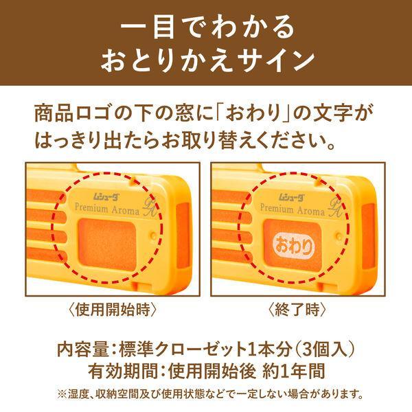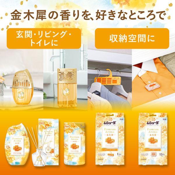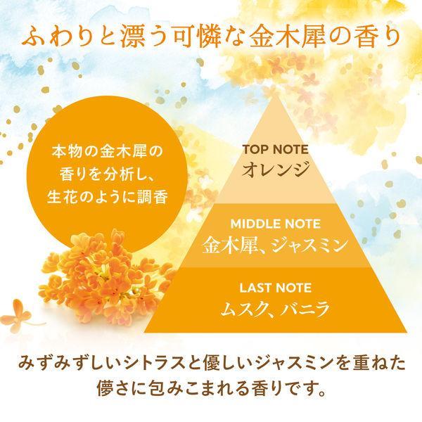 大切な衣類を約1年間しっかり虫から守ります。●パフューマーが厳選したフレグランスオイルを配合した香水調の香りが、収納空間内にふわっとやさしく広がります。●防カビ剤配合でカビの発育を抑え、衣類をカビから守ります。●収納空間にダニを寄せ付けにくくします。※マダニやイエダニを対象とした効果ではありません。●取り替え時期がわかる、おとりかえサインつきです。●金木犀:街中にふわりと漂う可憐な金木犀に、みずみずしいシトラスと優しいジャスミンを重ねた儚さに包みこまれる香りです。