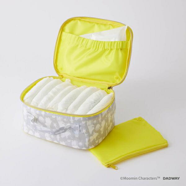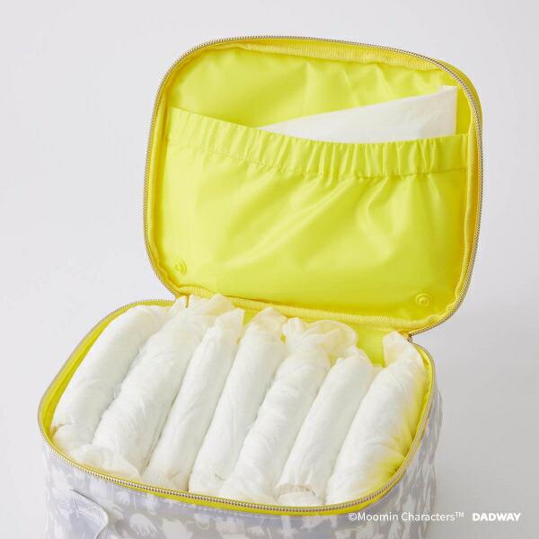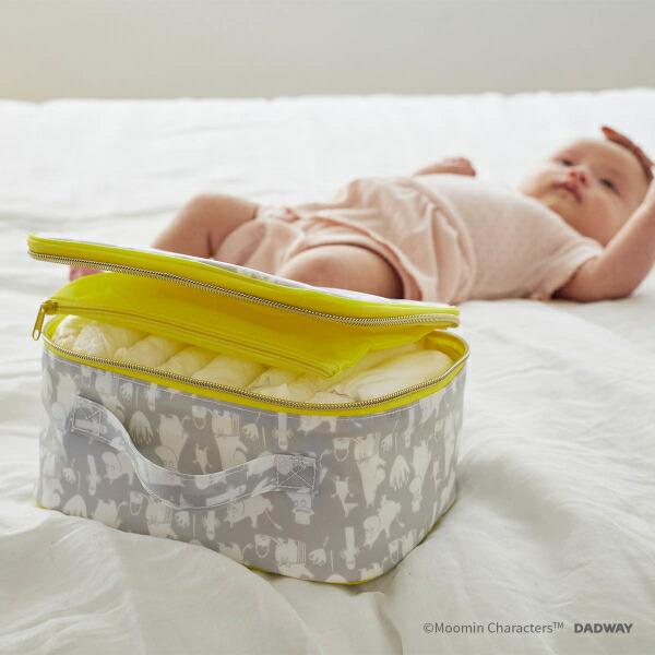おむつ替えグッズをまとめて収納。おしりふき、Sサイズのおむつ8枚がまとめて入ります。スナップで留めることができるインナーポーチ付き。表面はマットな風合いのPEVA加工で汚れのケアがしやすく衛生的です。落ち着いたカラーリングでセットで揃えるのもおすすめ。ムーミンとなかまたちが赤ちゃんとのおでかけを楽しくサポート!●水洗いできません。●乾いた布や水で濡らし固く絞った布で拭き、完全に乾燥させてください。●アルコール成分を含む除菌シート等で製品を拭かないでください。変色、変形するなど製品が劣化する可能性があります。