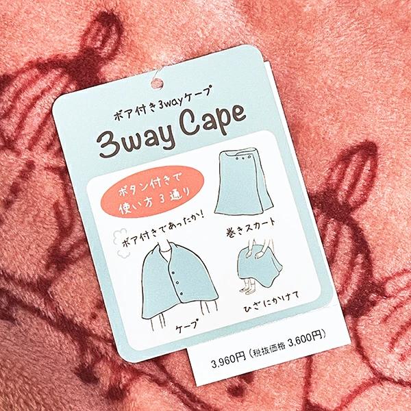 リトルミイのボア付3WAYケープです。肩を優しく包みこんでくれます♪ボタン付きなので巻きスカートにもなっちゃいます!ひざ掛けとして足元の冷え対策にも◎柔らかくてあったかいのでお家でのリラックスタイムにぴったりです☆彡