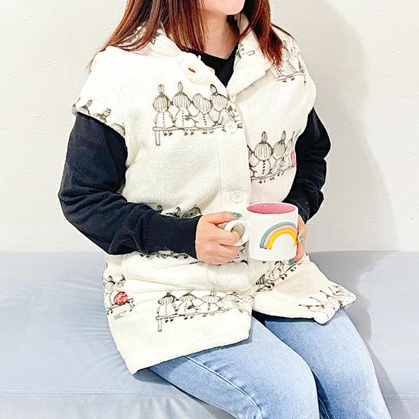 リトルミイの袖なしルームウエアです。柔らかくてあったかいのでお家でのリラックスタイムにぴったり☆袖なしだから動きやすい!嬉しいポケット付きです☆【サイズ:約75cm丈】