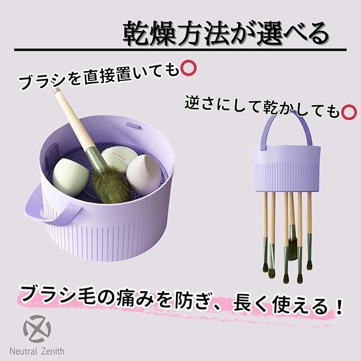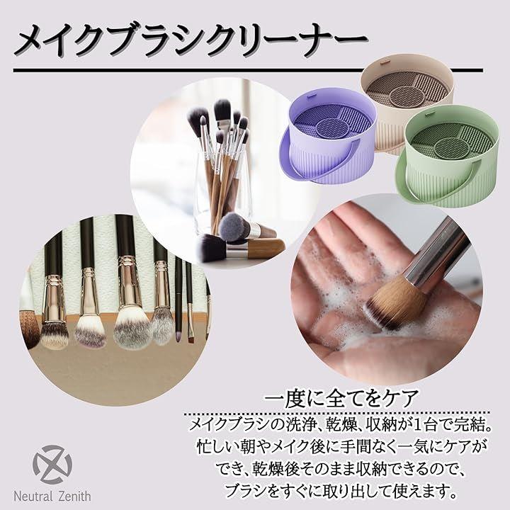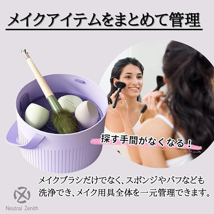 「メイクアイテムをまとめて管理」メイクブラシだけでなく、スポンジやパフなども洗浄でき、メイク用具全体を一元管理できます。