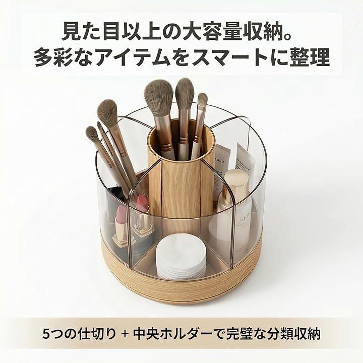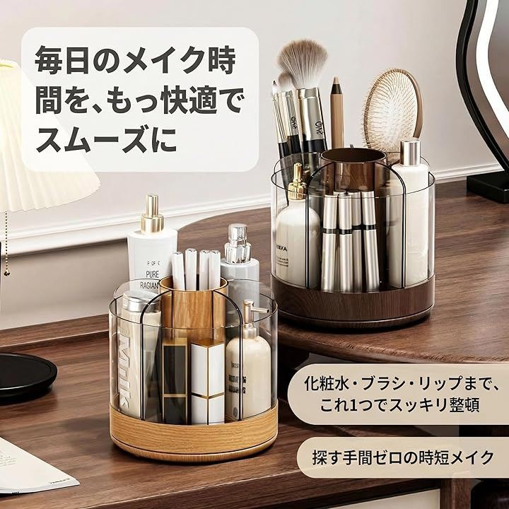 「360度回転で時短メイク」 くるっと回すだけで欲しいコスメがすぐ手に取れる回転式スタンド。