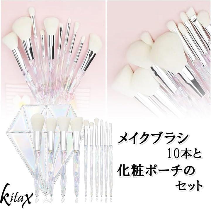 キラキラと輝くデザインが特徴的なメイクブラシ10本セットと化粧ポーチ付きのセットです。