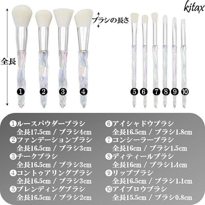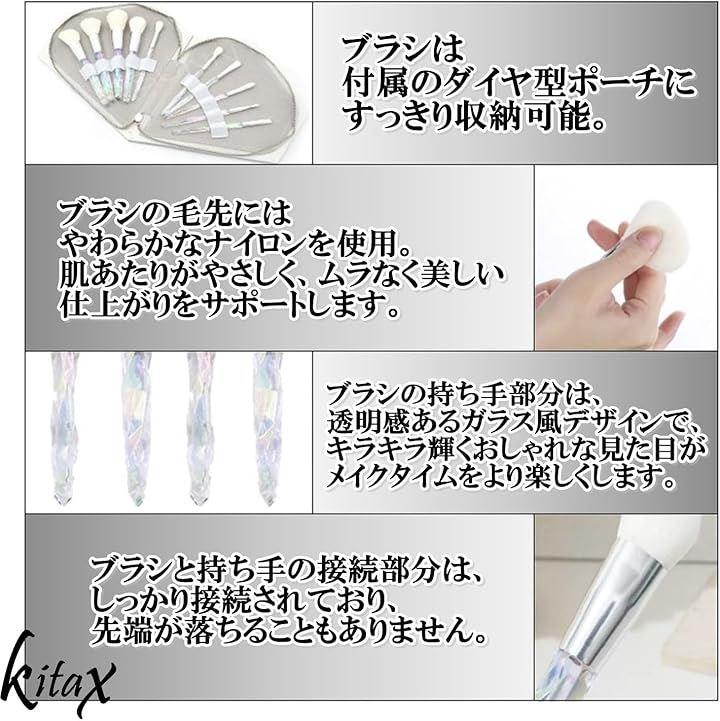 ブラシの持ち手部分は透明感のあるガラス風デザインで、キラキラと輝くおしゃれな見た目がメイクタイムをより楽しくします。