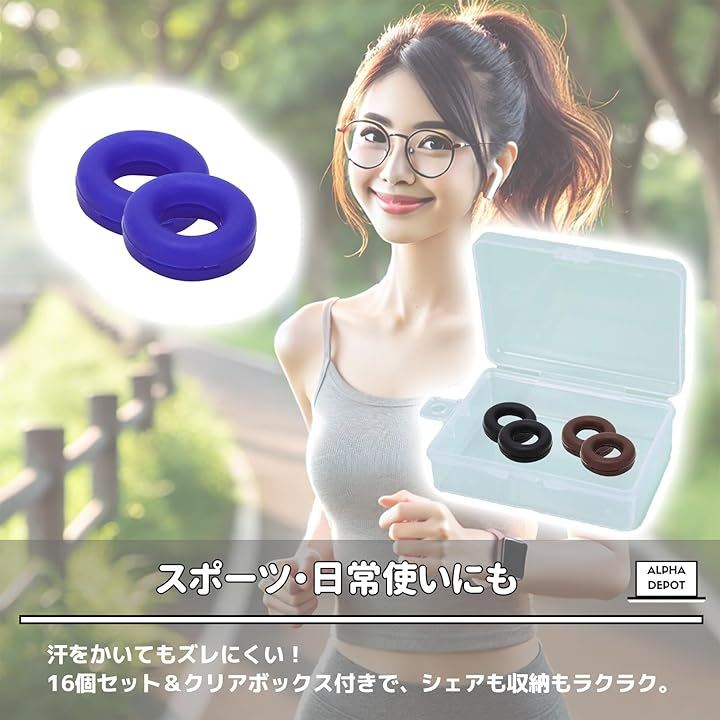 「スポーツやアウトドアでも安心」汗をかいてもズレにくい素材で、アクティブなシーンでも快適に使用可能。オフィスや日常使いにもぴったりで、16個セット&クリアボックス付きだから家族や友人とシェアもできる便利なアイテム。