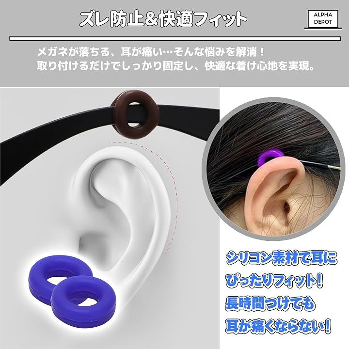 「メガネのズレ防止&快適フィット」メガネがズレる、運動中に落ちる、耳が痛くなる…そんな悩みを解消するメガネ固定リング。取り付けるだけでしっかり固定し、長時間の着用でも快適なフィット感を実現。