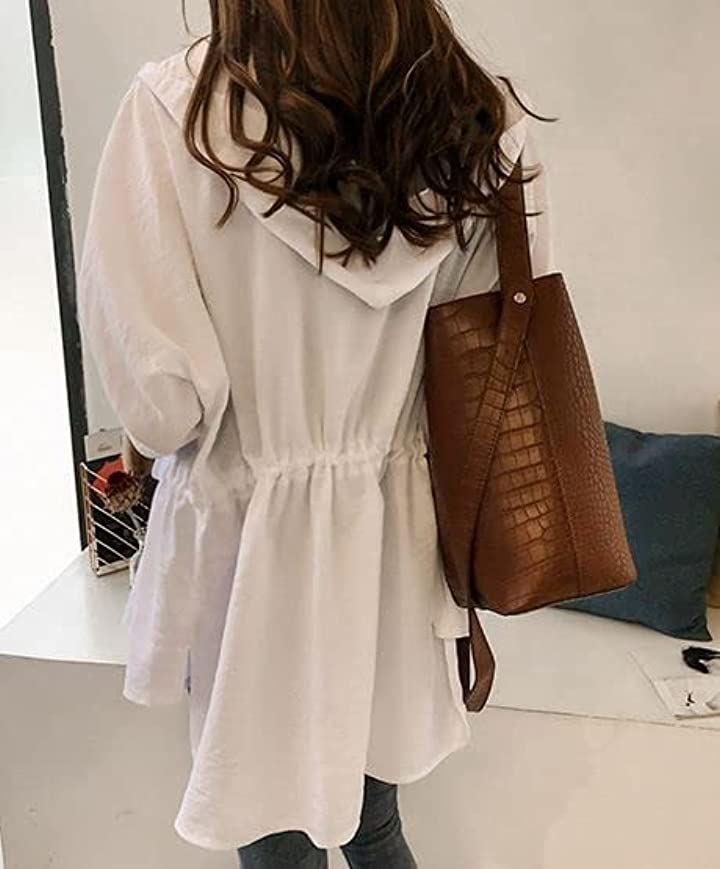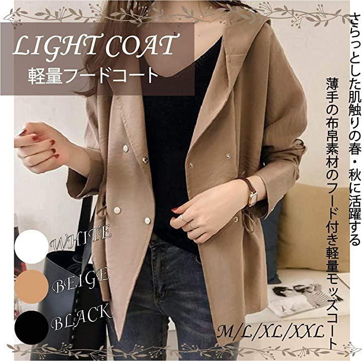 ・メイン素材: ポリエステル・素材構成: 100% ポリエステル・春・秋に活躍する薄手の布帛素材のフード付き軽量モッズコート・さらっとしたポリエステル素材なので、カーディガンのようにサラっと羽織ってもたつきの少ない薄めの仕上がりと軽量デザインはこれからの時期に。