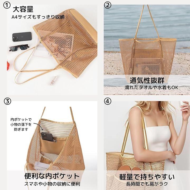 「大容量x軽量で使いやすい」 メッシュ素材を使用したこちらのショルダーバッグは、A4雑誌やタブレット、日用品などが楽々収納できる大容量サイズ。