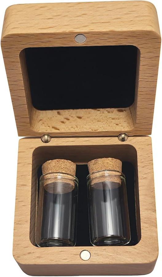 付属品充実: 2本のガラス瓶が付属しており、遺毛や遺骨を分けて保管することができます。