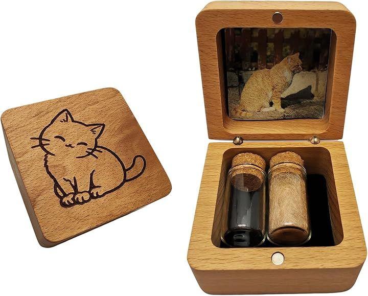 メモリアルボックス ペット犬の毛 保存 猫 ケース 乳歯 遺毛 遺骨入れ 仏壇 骨壷 天然木製 2本のガラス瓶付き コンパクト 手元供養 写真ショーケース