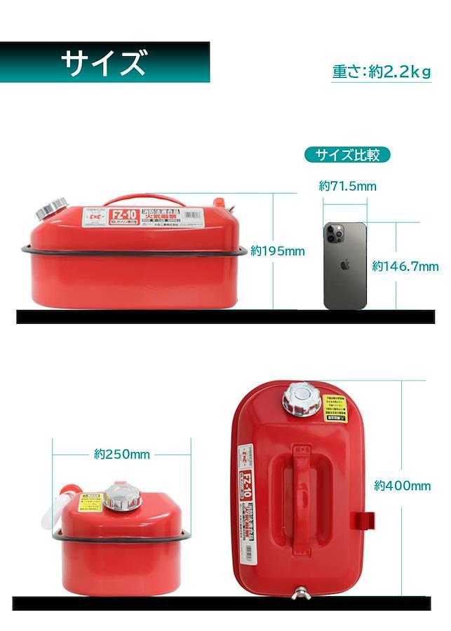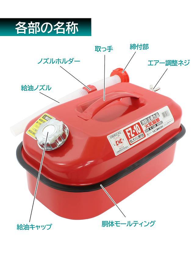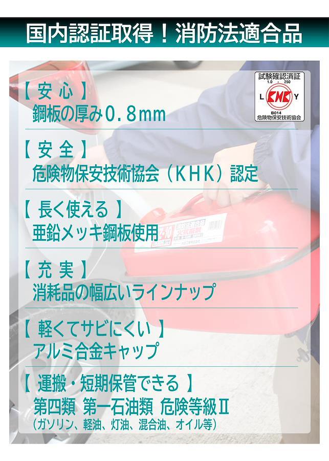 メルテック ガソリン携行缶 10L 消防法適合品 KHK [亜鉛メッキ鋼鈑] 鋼鈑厚み:0.8?o 積重ねタイプ Melt