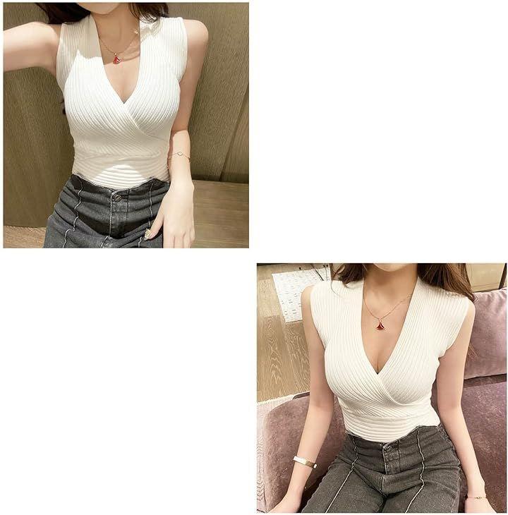 女性らしいデコルテラインが際立つ、セクシーでキュートなノースリーブニット。