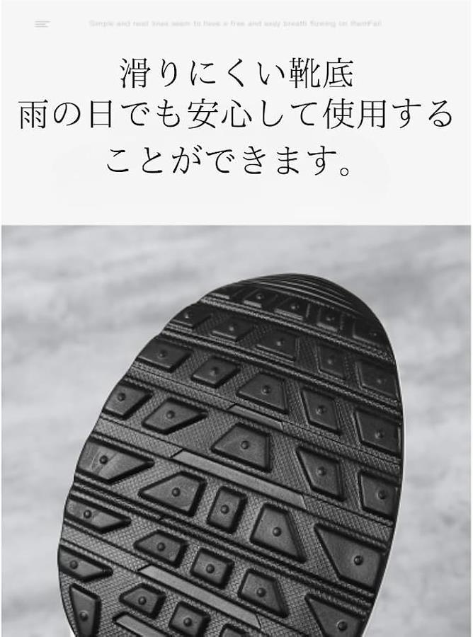 「滑りにくい靴底」 靴底は特殊形状の深い溝が刻まれているので、滑りにくく歩きやすい。