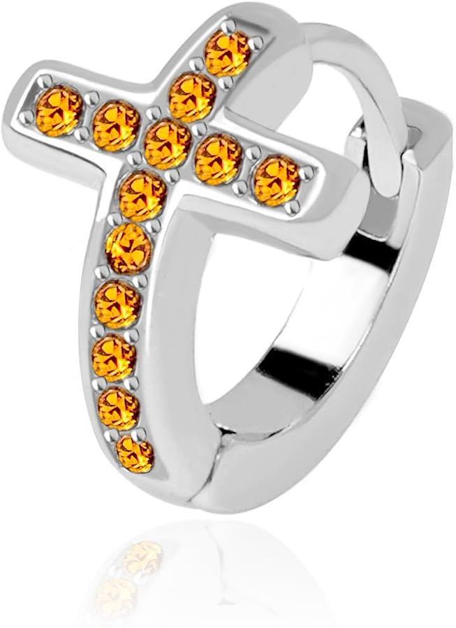定番のフープピアスにクロスのモチーフを重ねた存在感あるメンズピアス。