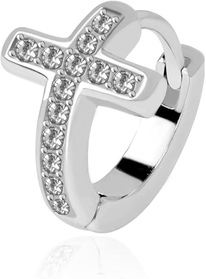 定番のフープピアスにクロスのモチーフを重ねた存在感あるメンズピアス。