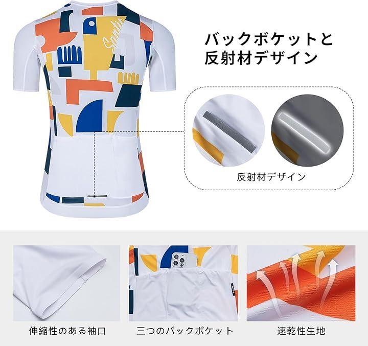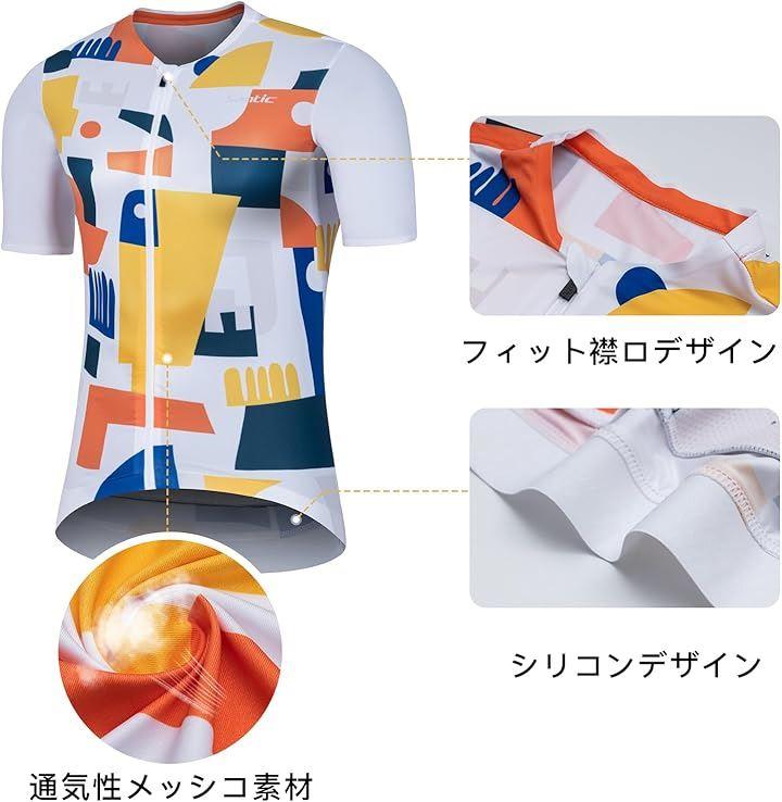 「通気素材」吸湿性と通気性が抜群、メッシュ加工が施され、走行中の汗を速やかに排出しながら肌の爽やかな状態を保ちます、長時間走行でも、さらりとした着心地春夏用サイクルジャージです。