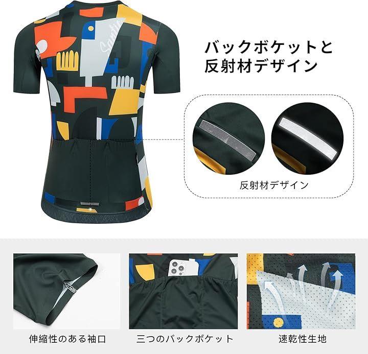「通気素材」吸湿性と通気性が抜群、メッシュ加工が施され、走行中の汗を速やかに排出しながら肌の爽やかな状態を保ちます、長時間走行でも、さらりとした着心地春夏用サイクルジャージです。