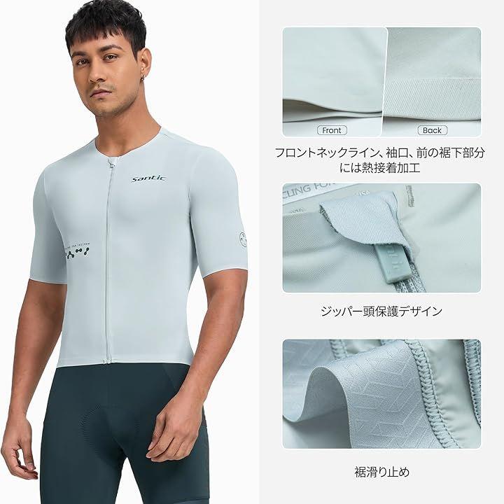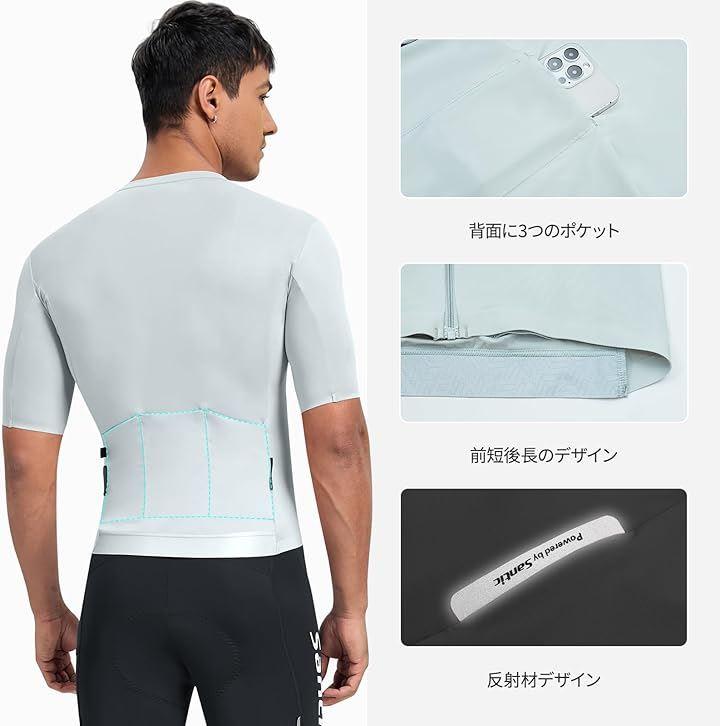 メンズ サイクルジャージ 半袖 薄め 涼感素材 サイクリングウエア サイクルウエア ロードバイクジャージ 自転車ウエア ポケット付き 伸縮性 吸汗 速乾 UVカット