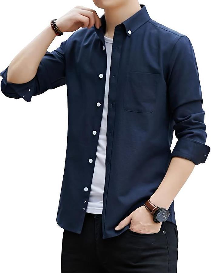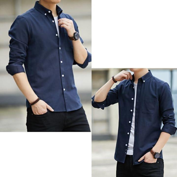メンズ シャツ 長袖 ゆったり シンプル 無地 カジュアル フォーマル ボタンダウン