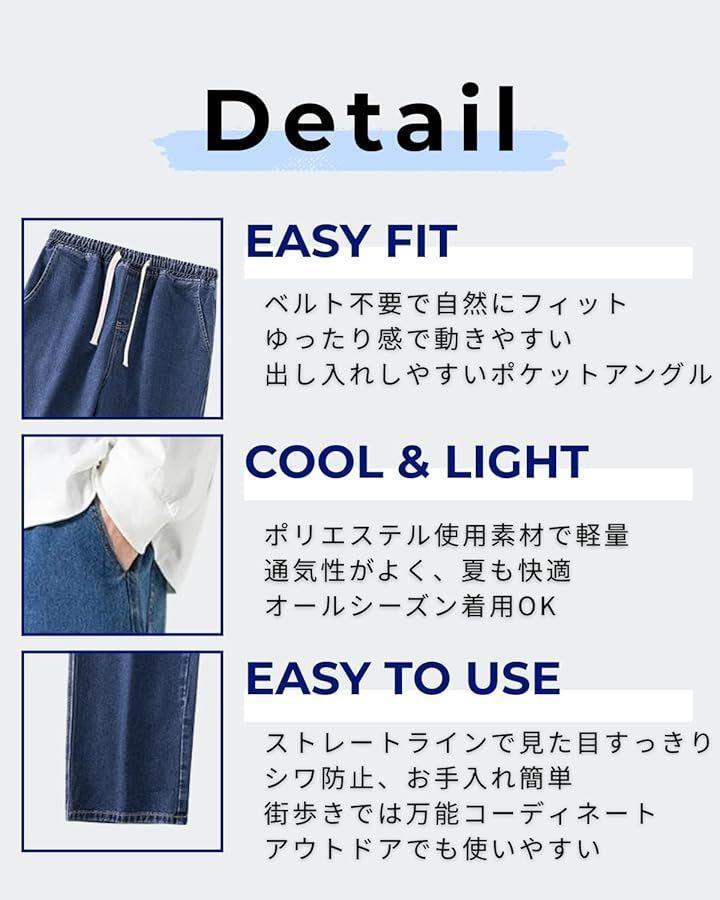 デニム風のカジュアルな見た目でありながら、軽量で動きやすく、締め付け感を抑えたストレート寄りのシルエットを採用。