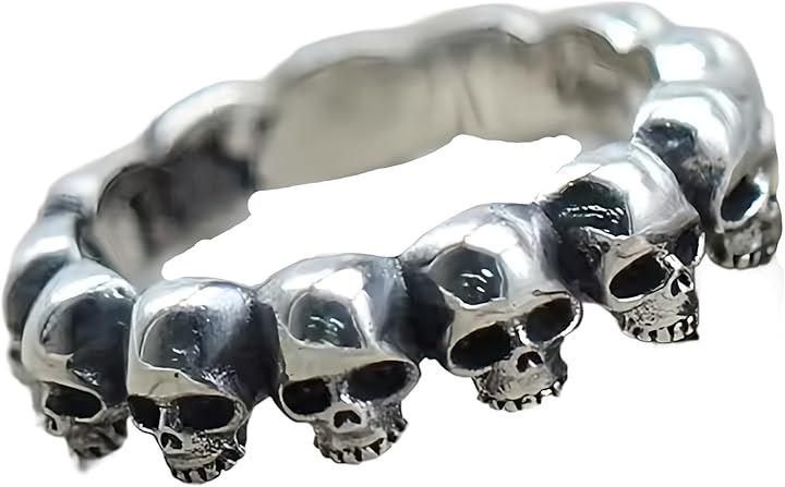 複数の髑髏の顔が連なった迫力満点のシルバーリング。