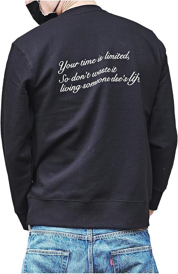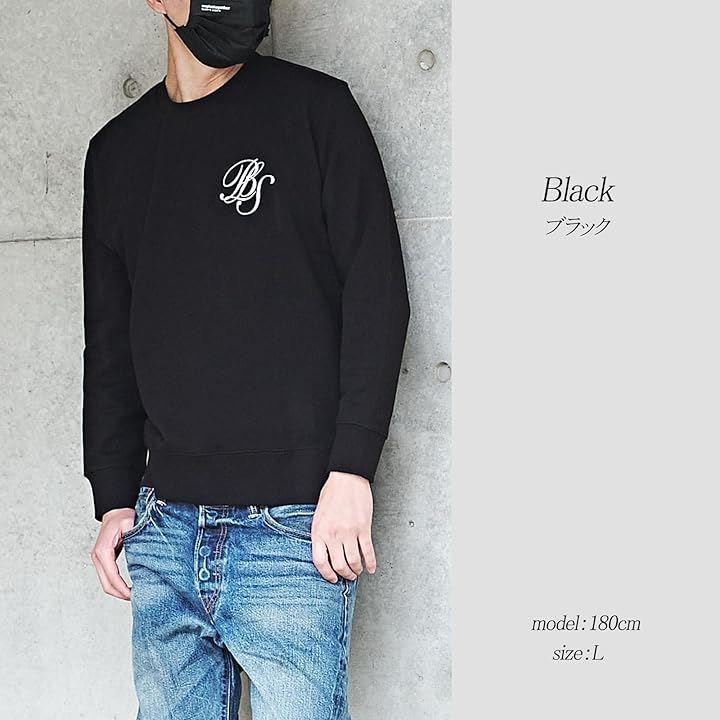 胸元にプリントされたワンポイントロゴが印象的なトレーナー。