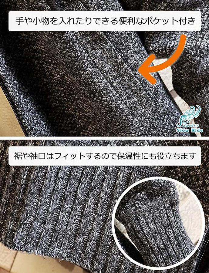 後ろから見たシルエットも、スマートでカッコいい印象を与えてくれます。暖かく快適な着心地と都会的なシルエットが、メンズファッションを一段と引き立たせてくれるニットカーディガンです*フリース素材を採用しているので、ジッパーの調整で気温に合わせて防寒のチョイスも可能。後ろから見たシルエットも、スマートでカッコいい印象を与えてくれます。