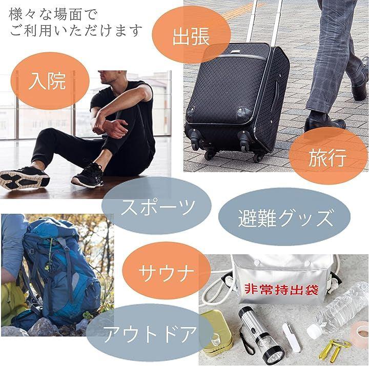 旅行や出張、アウトドアの宿泊時、スポーツやジムの後の着替えに、夏場で汗をかいたときなど、鞄の中に入れておけばいざというときに便利です。
