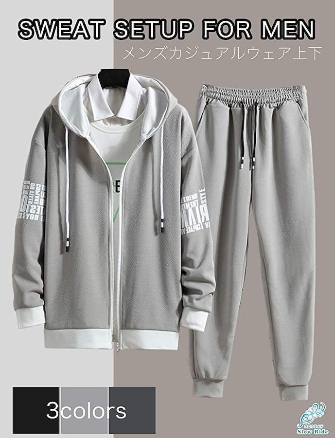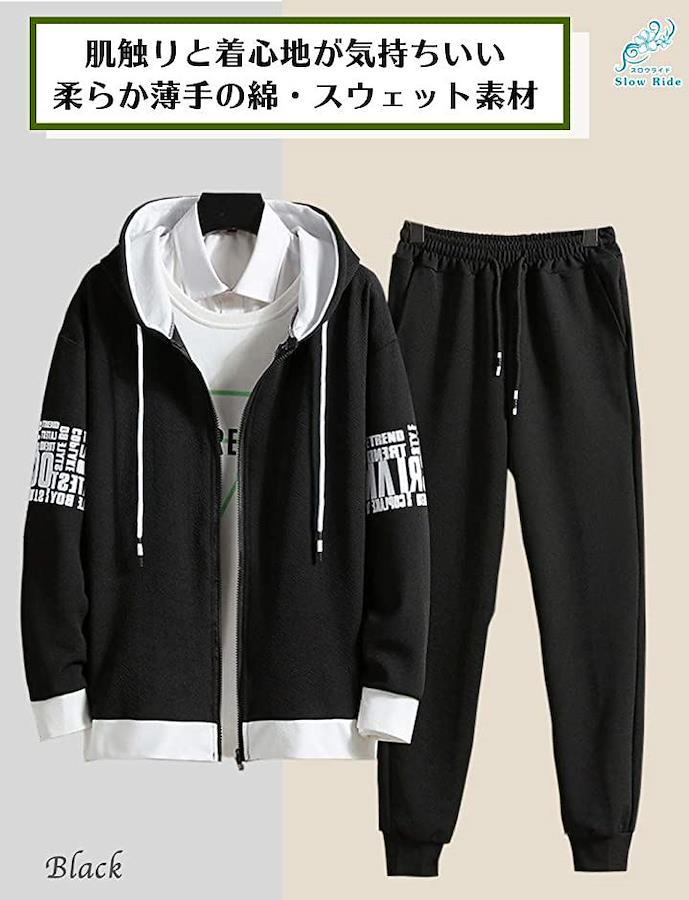 」サラリとした肌触りと着心地が気持ちいい、柔らか薄手の綿・スウェット素材で長袖タイプの、大人気メンズ用のカジュアルウェア上下です・ 都会的で魅力的なメンズらしさをワイルド&エレガントに演出する、フードがついた動きやすいストレッチ仕様。サラッとした感覚が癖になるメンズカジュアルウェア上下・ ひじ元にあるアクセントロゴのシンプルなデザインながら、部屋着や普段着、室内着としてはもちろん、お散歩、ウォーキング、お買い物、国内旅行、海外旅行、森林浴といったカジュアルウェアとして、 様々なシチュエーションで大活躍します。