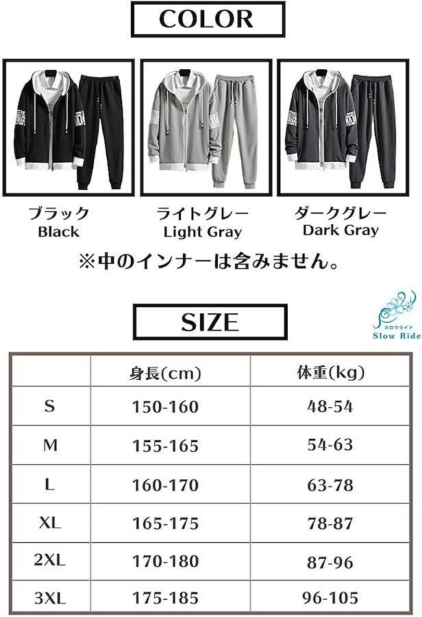 カラーはライトグレー、ダークグレー、ブラック、サイズはS、M、L、2L(XL)、3L(3XL、XXL)、4L(4XL、XXXL)までの6サイズ、 18バリエーションからお選び頂けます。