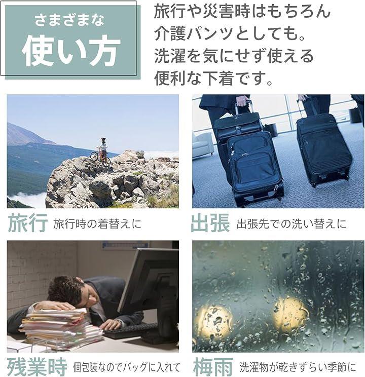 お洗濯ができないトラベル、仕事での残業、アウトドア、バカンス、介護パンツや梅雨の洗濯物が乾きにくい時期にも。