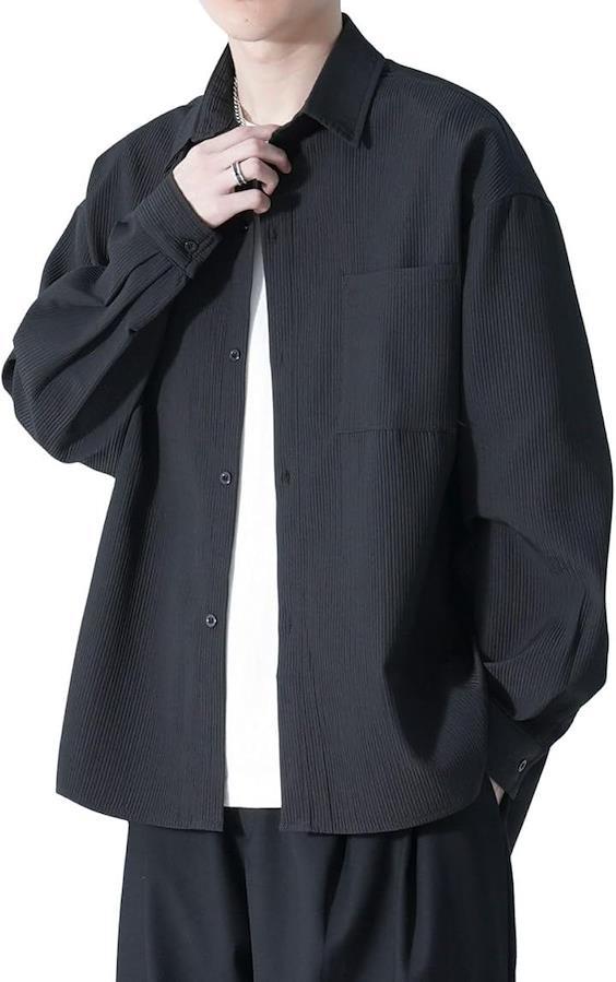 普段のコーデにTシャツを合わせてサッと羽織るだけでバランス良くまとまり、1枚あると重宝する長袖シャツ メンズ ゆったりデザインです。