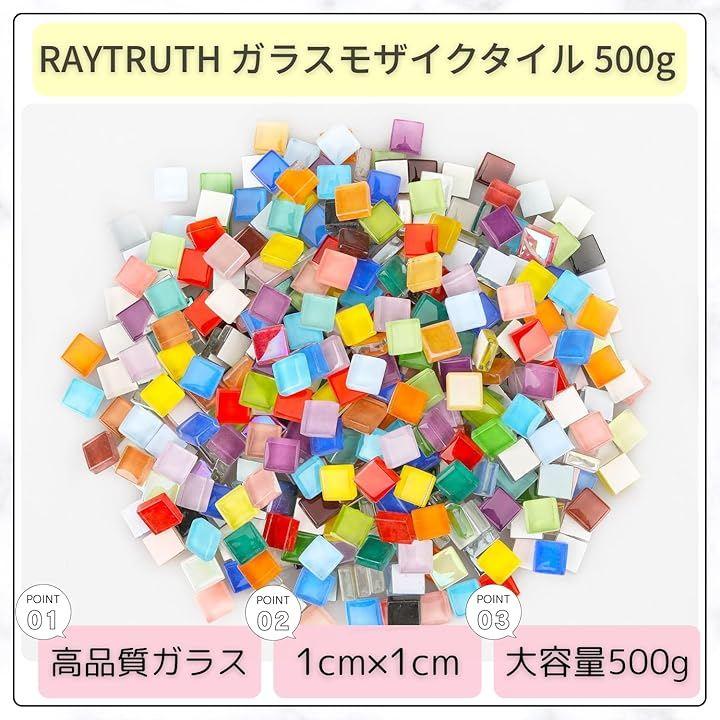 「たっぷり500g入り」ミックスカラーのガラスピースがおよそ500g入った大容量セット。