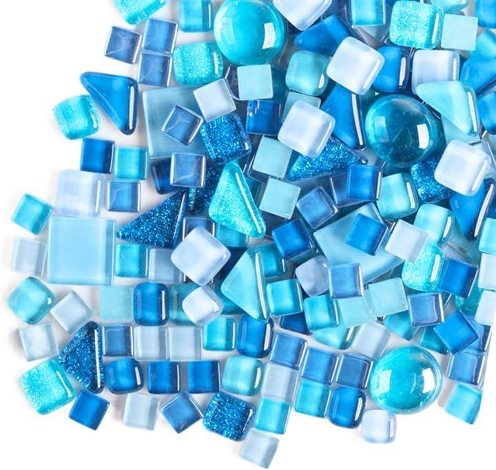 「商品内容」ガラスモザイクタイル 500g分 「材質」ガラス 「仕様」丸・四角・三角ランダム混合(四角多め) 「カラー」青・水色・空色・黄色・緑・青緑・桃色・赤・オレンジ・白・黒・各色混合 など多種ご用意しております。