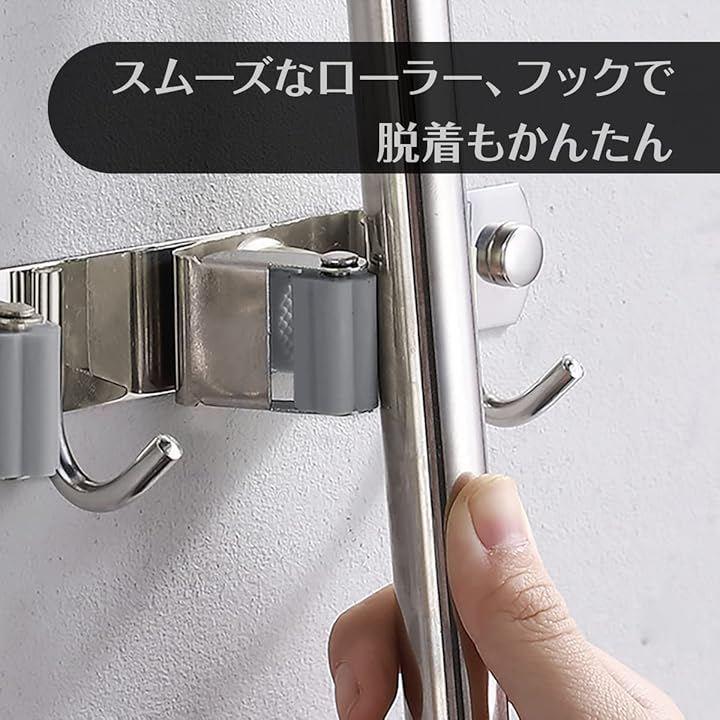 「このモップホルダーの特徴」モップホルダーはスムーズな高級ローラーを使用し清掃器具などの脱着がスムーズに行えます。