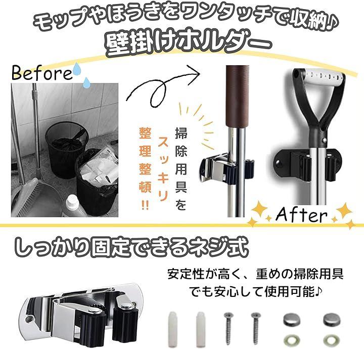 「こんな方におすすめ」 掃除道具やスコップ・ほうきなどの長物をスッキリ収納したい方 粘着式では不安、しっかりネジ止めしたい方 屋外やガレージなど湿気や風雨に強い収納ツールを探している方 掃除用具を壁に掛けて省スペース化したいご家庭 シンプルかつ丈夫なモップホルダーを求める方 賃貸住宅で壁をすっきり使いたい方(*下地要確認)