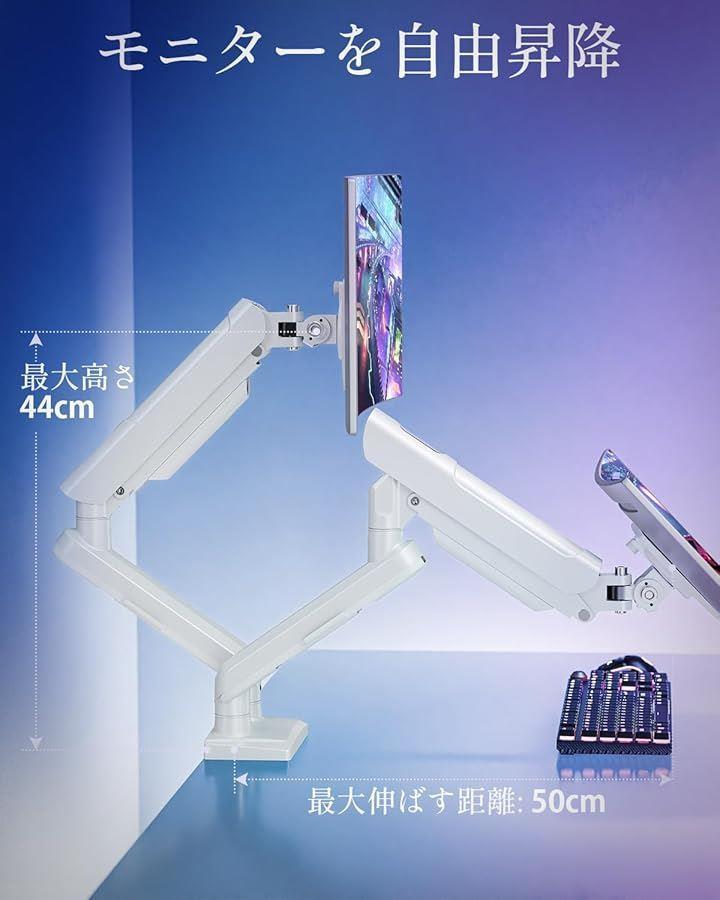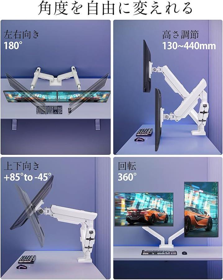 高品質ガススプリング内蔵、より柔軟にモニターの角度を変更できます。