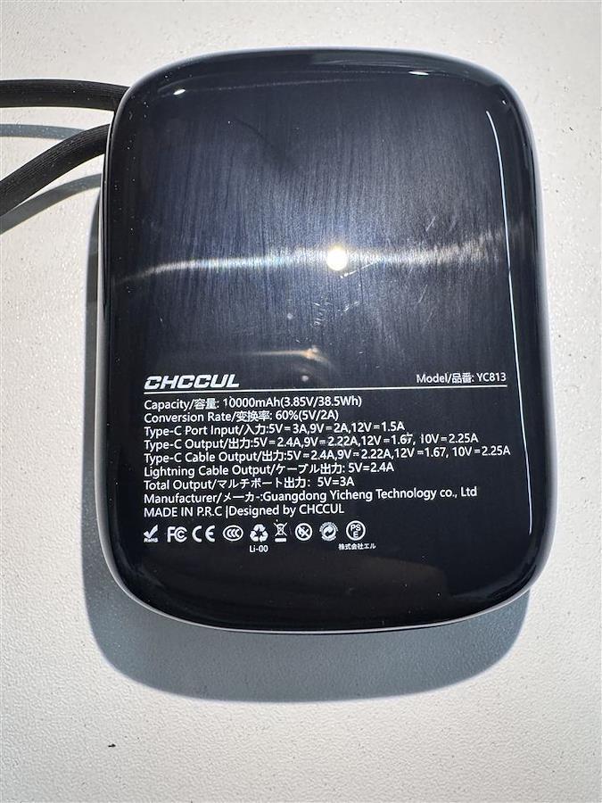 「10000mAh大容量かつコンパクト設計」10000mAhの大容量を備えており、iPhone 16約1.8回、Galaxy S24を約1.5回充電することができます。