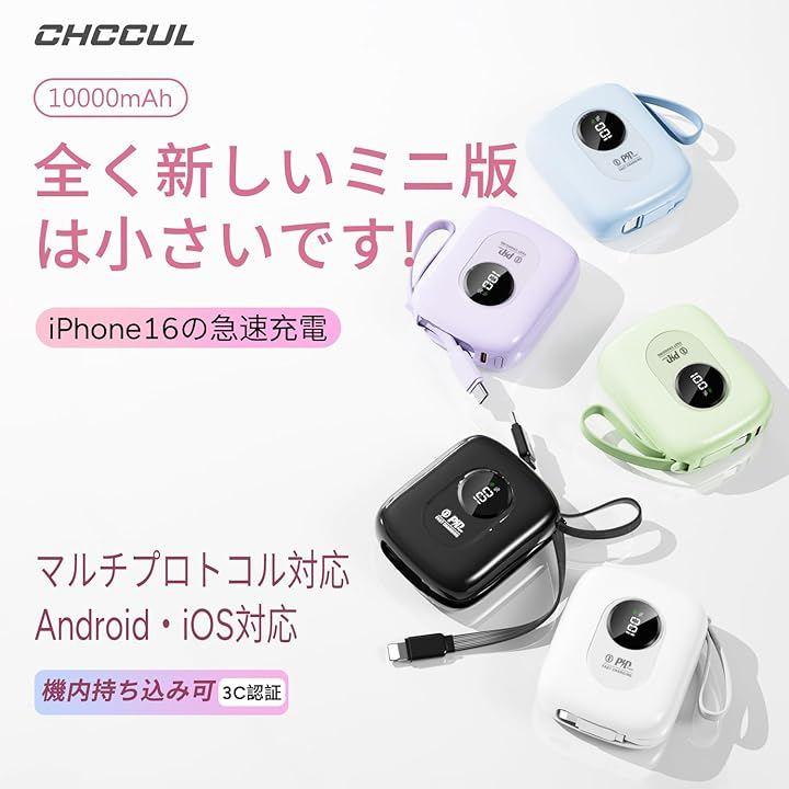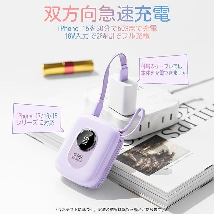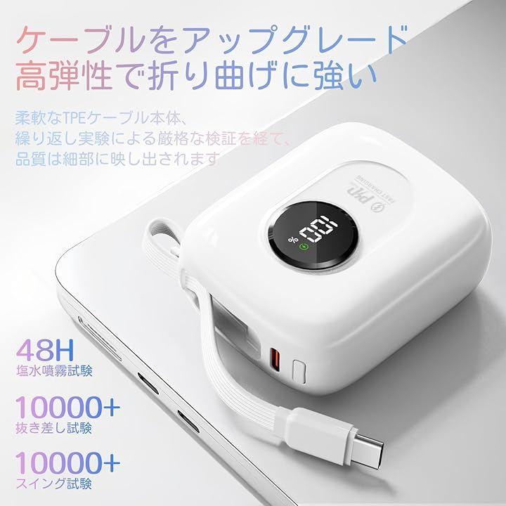 「10000mAh大容量かつコンパクト設計」10000mAhの大容量を備えており、iPhone 16約1.8回、Galaxy S24を約1.5回充電することができます。