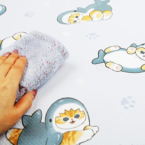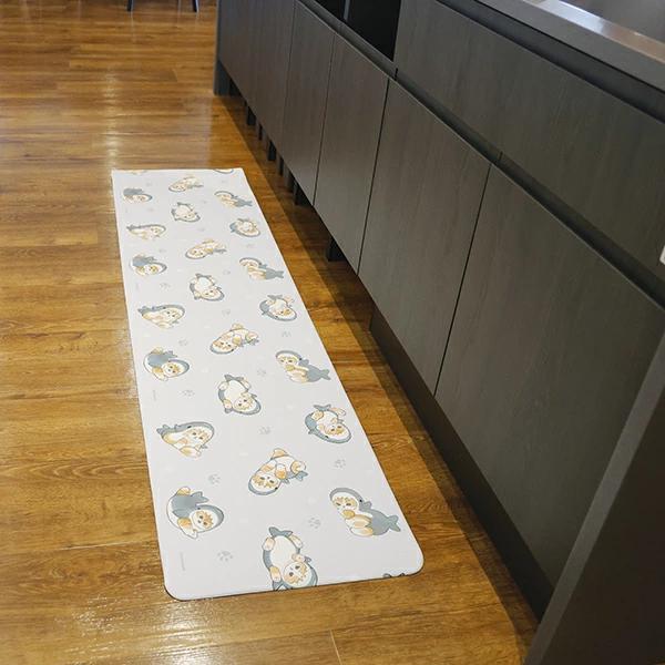 モフサンドのキッチンマットです。いろんなサメにゃんが楽しめてgood☆クッション素材でソフトなふみ心地でキッチン作業も疲れにくく、汚れてもサッと拭くだけなのでお手入れも楽々なのでママも嬉しい~♪可愛いキッチンアイテムなのでキッチンに立つだけで気分もHAPPYになっちゃいます☆