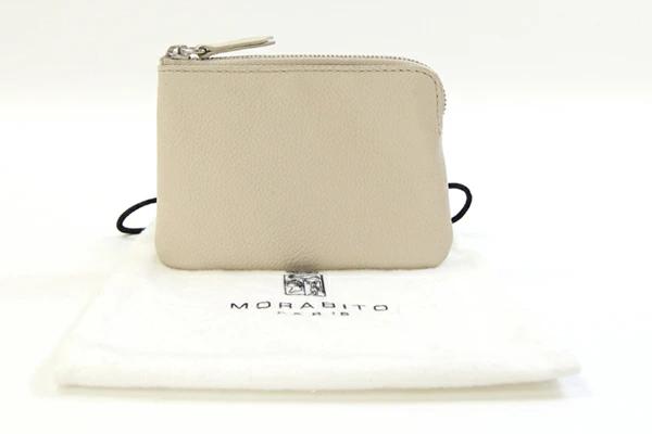 モラビト コインケース アイボリー レザー 中古 小銭入れ ミニポーチ 小物入れ カードケース キーリング付 レディース MORABITO