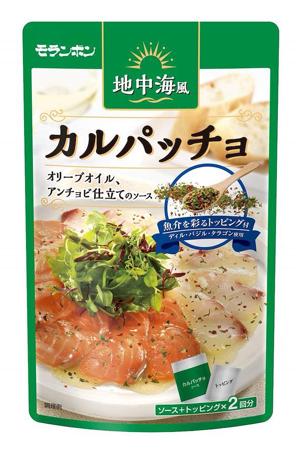 五感で楽しむ地中海風 カルパッチョです。ソースとトッピングをかけるだけで食卓を華やかに彩ります。ソースにはグレープフルーツ果汁を追加し、爽やかな酸味で素材を引き立てます。ソースの色も明るいので彩りよく仕上がります。また、こだわりトッピング付きです。家庭には無い、ハーブ(ディル・バジル・タラゴン)と岩塩を使用した仕上げ用トッピングです。