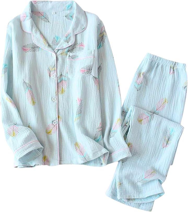 「優しい肌触りのガーゼパジャマ」天然素材である綿100%のダブルガーゼを使用した女性用長袖パジャマです。