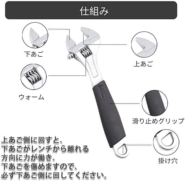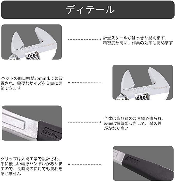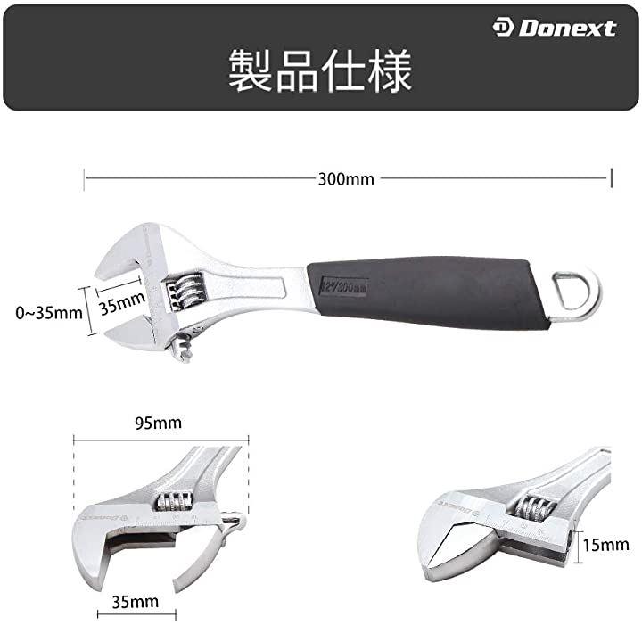 「使用簡単」全長300mm(12)で、ヘッドの開口幅は35mmまでに調整され、需要なサイズを自由に調節できます。