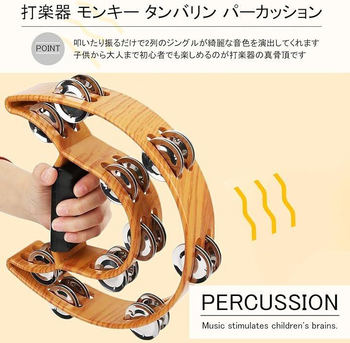 モンキー タンバリンは、2列のジングルが特徴で、綺麗な音色を奏でます。